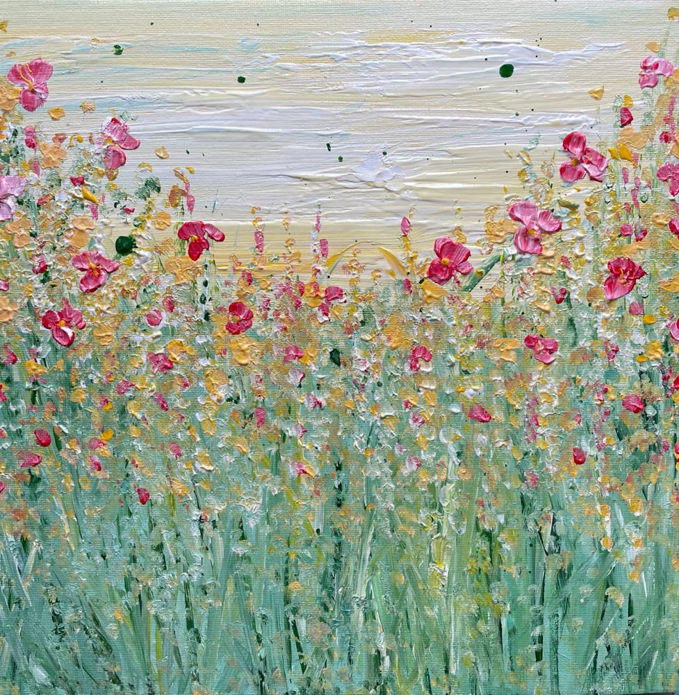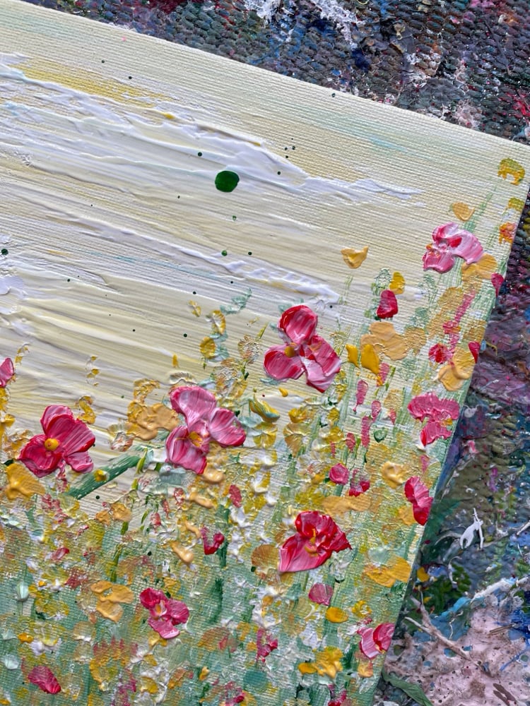 30cm x 30cm canvas, created with acrylic and ink. Full of texture and colour, this piece celebrates the first day of October with vibrant blooms and fresh energy. Enjoy!!